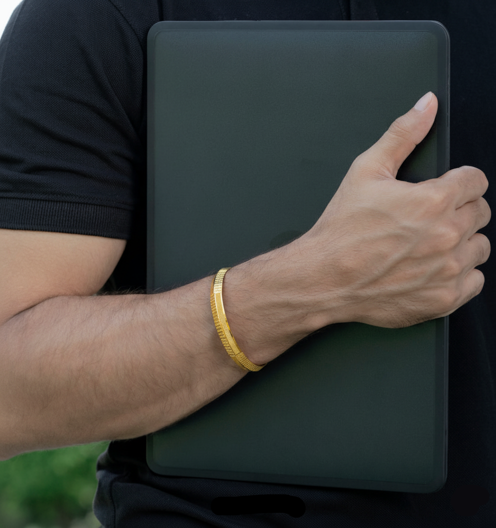 Crafted to perfectly mimic solid gold, this Kada gives you the same luxurious shine and prestige—without the fear of theft or loss.