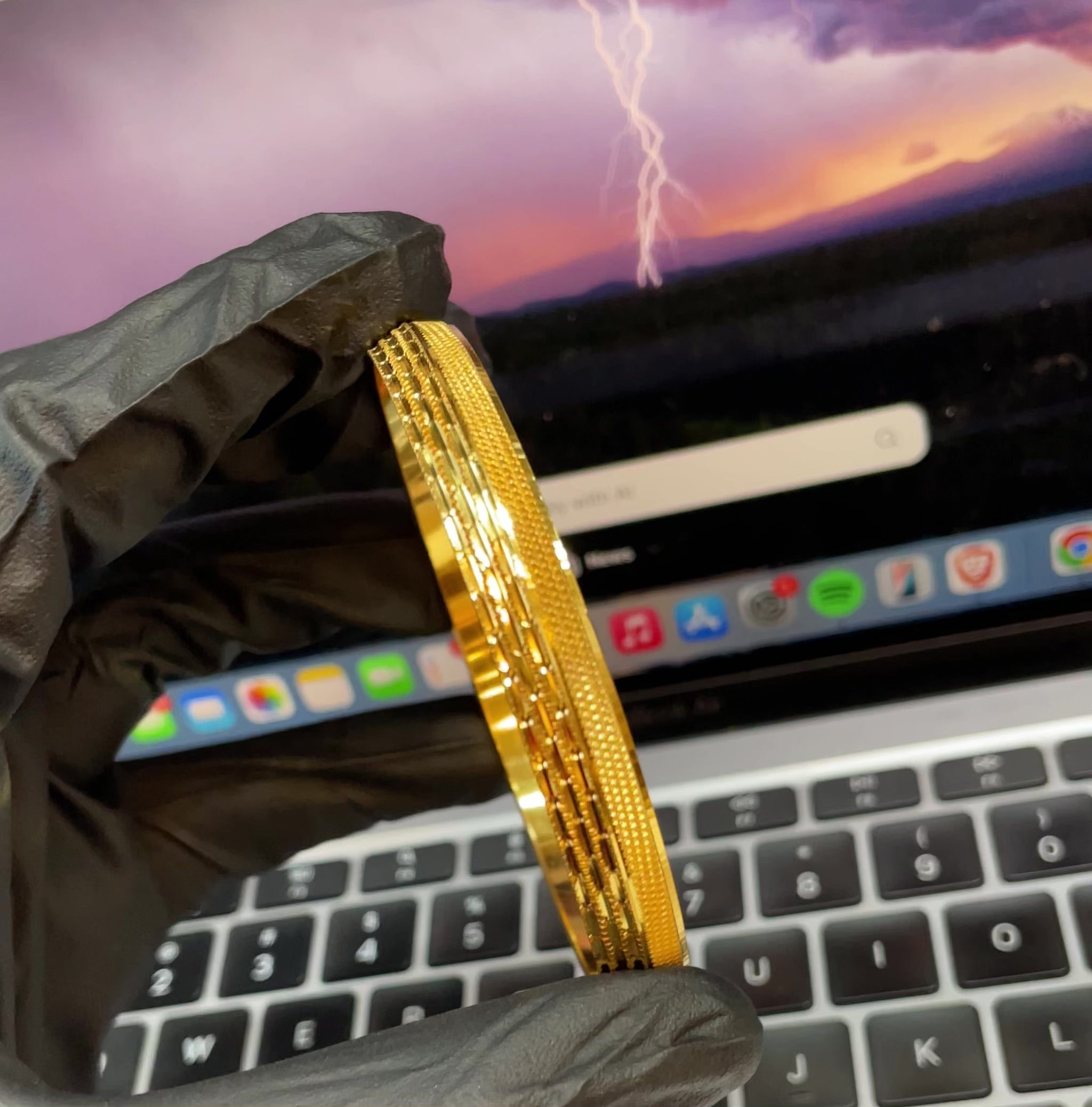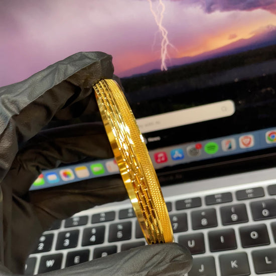 Crafted to perfectly mimic solid gold, this Kada gives you the same luxurious shine and prestige—without the fear of theft or loss.